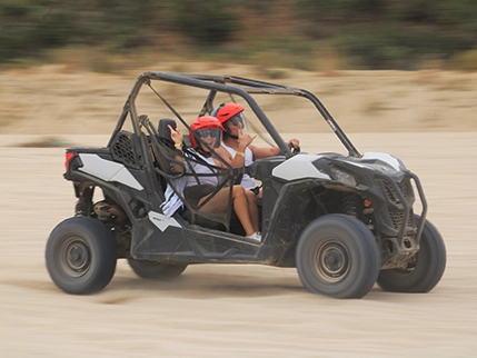 ¡Prepárate para el tour todoterreno más emocionante de Cabo! Nuestro tour Side by Side es perfecto para todas las personas amantes de la adrenalina. Comienza tu excursión abordando el transporte gratuito con aire acondicionado que te llevará a Cactus. Después de un rápido registro en check-in y un informe de seguridad de tu guía experto bilingüe, estarás listo para experimentar las playas y desiertos de Cabo mientras sientes la adrenalina de conducir o montar un vehículo UTV Side by Side.