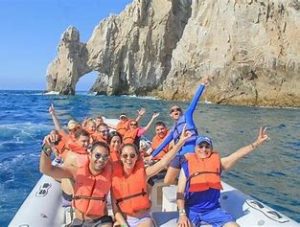 Enjoy an exhilarating journey with our Cabo snorkel & Land’s End Arch tour! Experience the thrill of a lifetime as speed boats transport you to the Arch, Lover’s Beach, view the sea lion colony, and travel to Land’s End. Immerse yourself in the crystal-clear waters of Chileno Bay for exciting snorkeling in Cabo San Lucas or power snorkeling escapade with sea scooters, encountering a vibrant array of marine life.